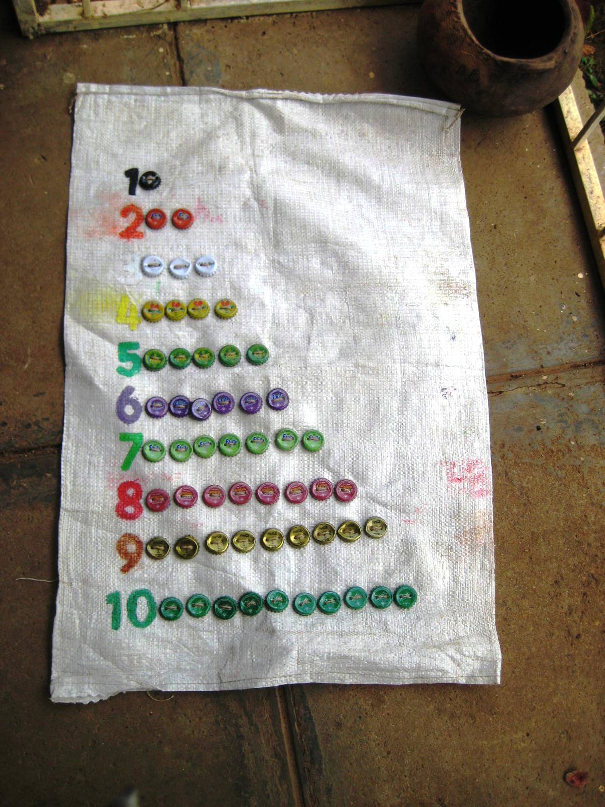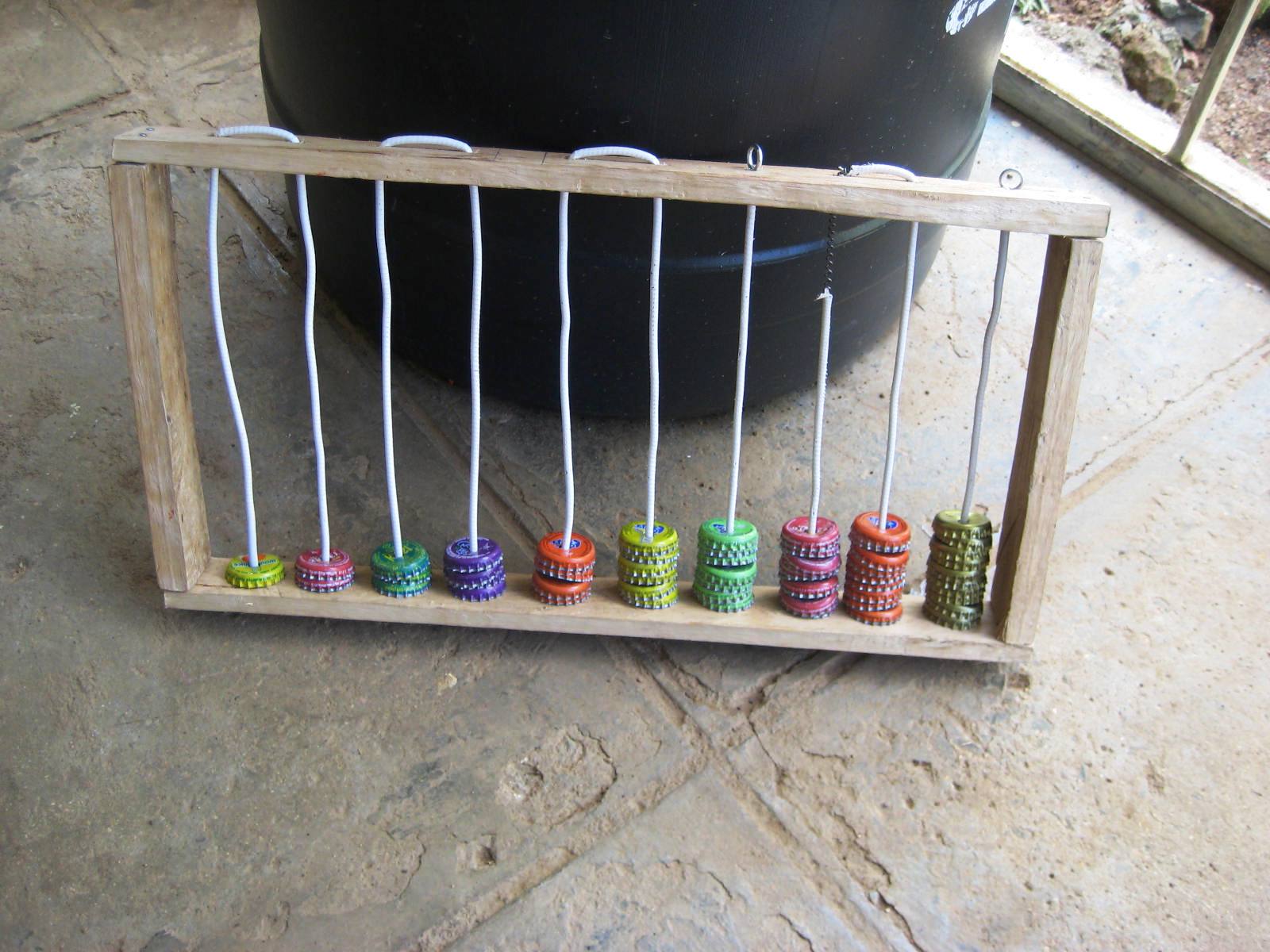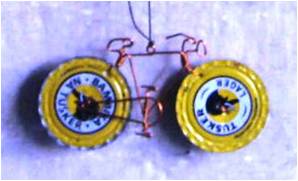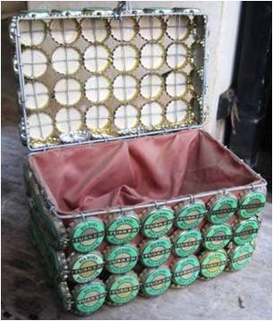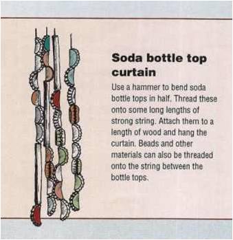 Bottle tops from soda or beer bottles have many uses, both practical and decorative. Click on the picture to enlarge it.