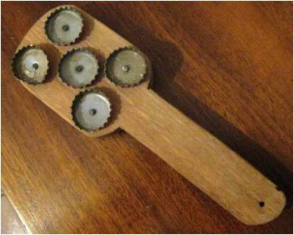 REAP teaches how to make a simple tool for removing scales from fish can be made by nailing bottle tops to a wooden paddle.