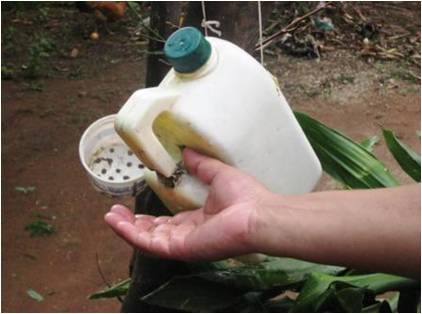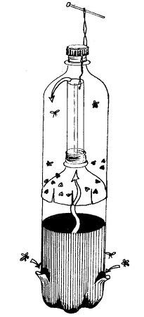 An effective fly trap can be made from two plastic bottles for details see our Teaching Leaflets page under Resources for how to make this