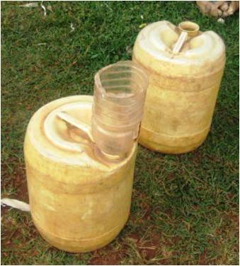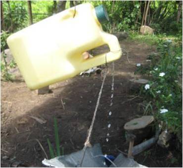 Larger plastic containers such as those used for oil also have many uses like this tippy tap.